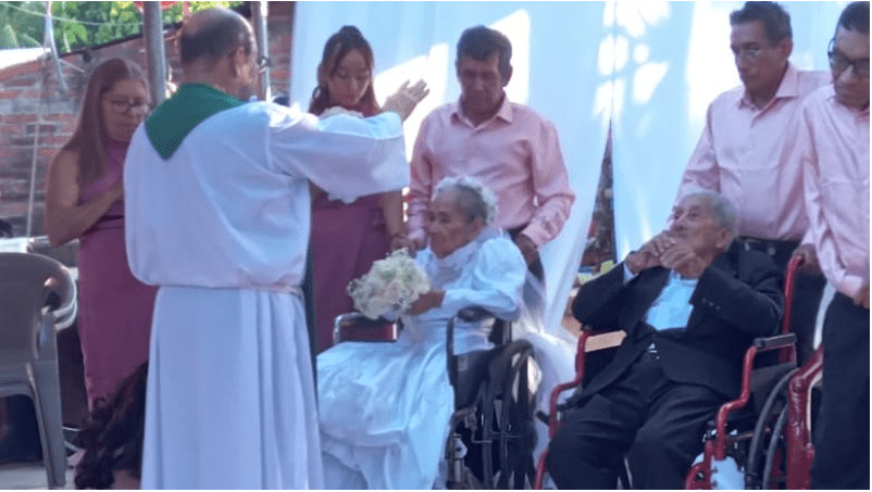 Pedro Franco de 94 años y Santos Bonilla de 91 años son una pareja que ha celebrado con gran alegría el aniversario de su boda, en compañía de sus nueve hijos y más de 50 nietos, además de amigos cercanos.