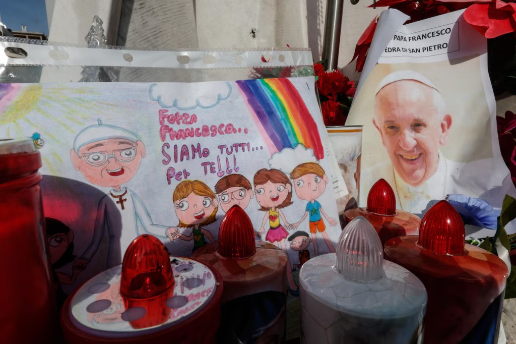 Los fieles se reúnen en la Plaza de San Pedro en el Vaticano y afuera del Hospital Gemelli de Roma este lunes mientras el papa Francisco permanece gravemente enfermo pero con buen ánimo, según informó el Vaticano.
